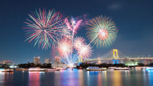 8. Odaiba Rainbow Fireworks: The Odaiba Rainbow Fireworks display, typically held in December, combines fireworks with the illumination of Odaiba’s famous Rainbow Bridge. This unique winter spectacle creates a magical ambiance in Tokyo Bay.