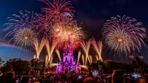 9. Tokyo Disneyland Fireworks: While not a traditional fireworks festival, Tokyo Disneyland and DisneySea regularly host breathtaking fireworks shows as part of their evening entertainment. The magical atmosphere within the theme parks enhances the overall experience.